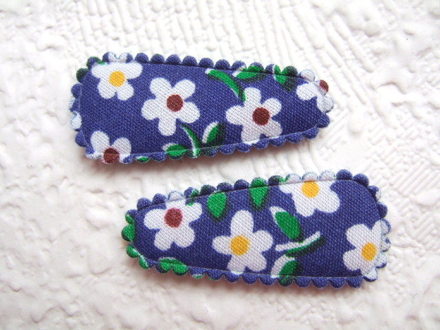Donker blauw bedrukt met witte bloemetjes.