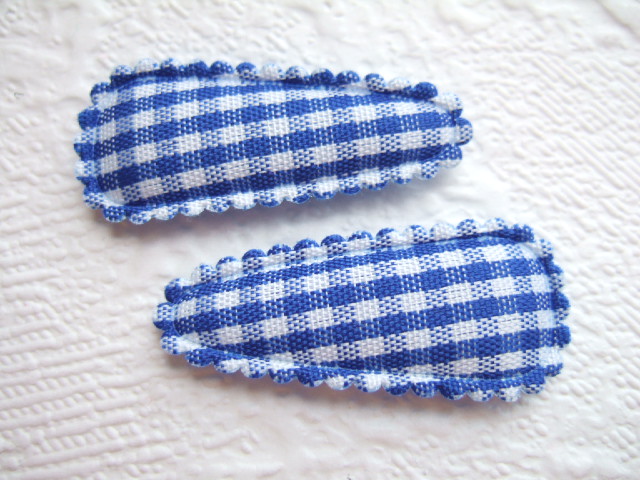 Donker blauw-wit geruite kniphoesjes met een recht ruitje, voor 3 cm haarknipjes.