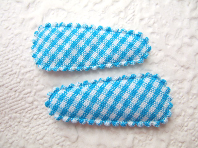 Aqua blauw – wit geruite kniphoesjes met een schuin ruitje, voor 3 cm haarknipjes.