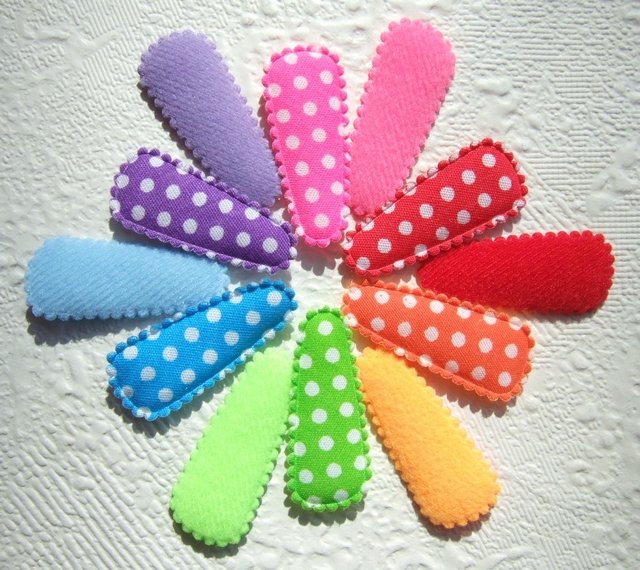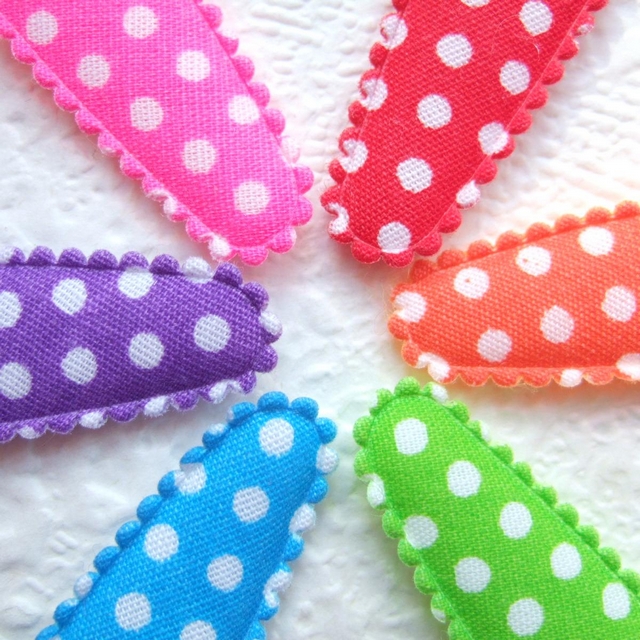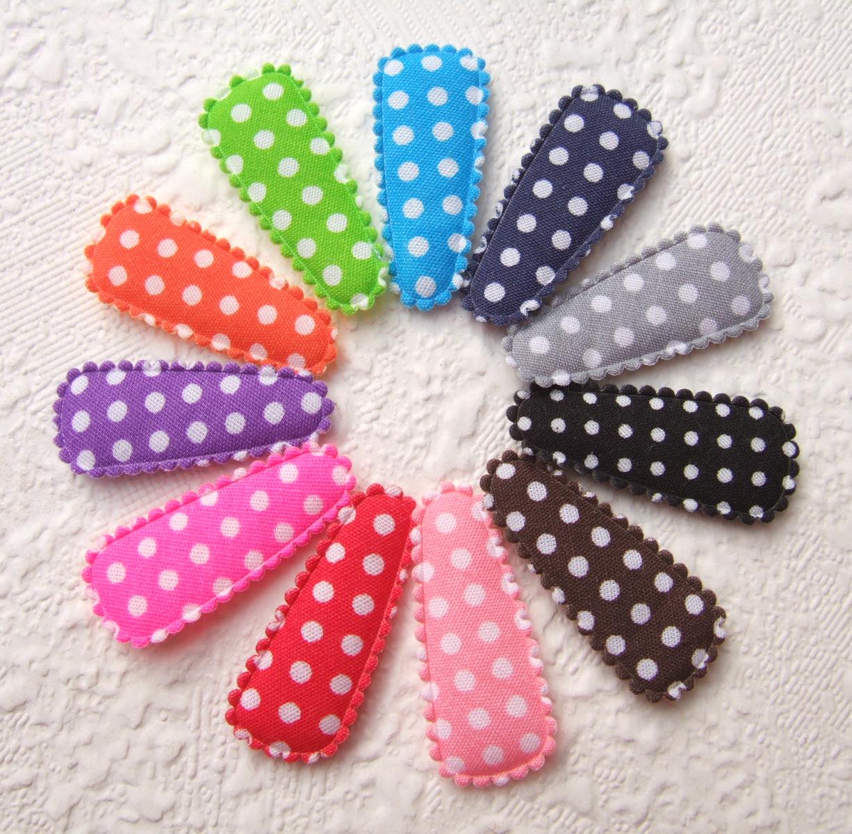 Katoenen kniphoesjes voor 3 cm haarclips, grijs met witte stippen.