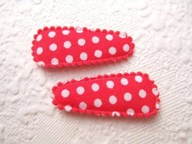 Katoenen kniphoesjes voor 3 cm haarclips, rood met witte stippen.