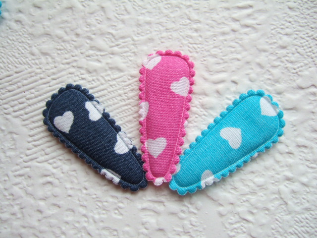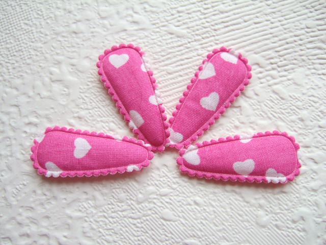 Katoenen kniphoesjes voor 3 cm haarclips, bedrukt met witte hartjes.