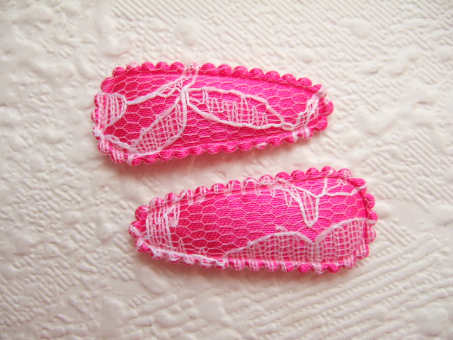 Prachtige kniphoesjes van satijn met fijn wit kant, voor 3 cm haarclipjes.
