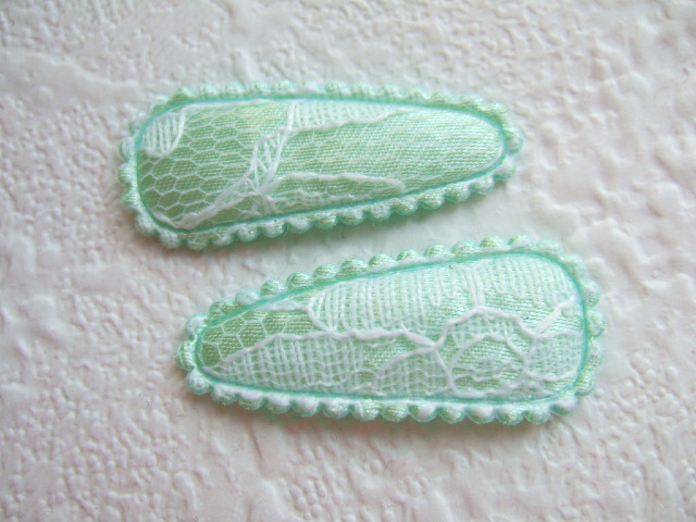 Prachtige kniphoesjes van satijn met fijn wit kant, voor 3 cm haarclipjes.