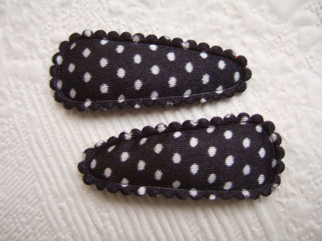 Zwarte satijnen polkadots kniphoesjes voor 3 cm haarclips.
