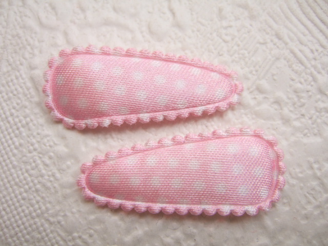 Roze satijnen polkadots kniphoesjes voor 3 cm haarclips.