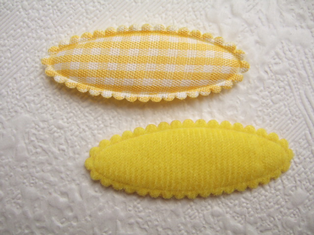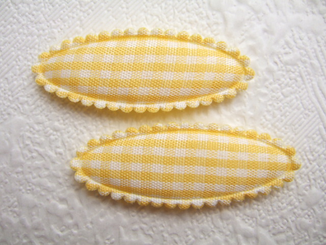 Ovale kniphoesjes met een geel – wit ruitje voor 4 cm haarknipjes.