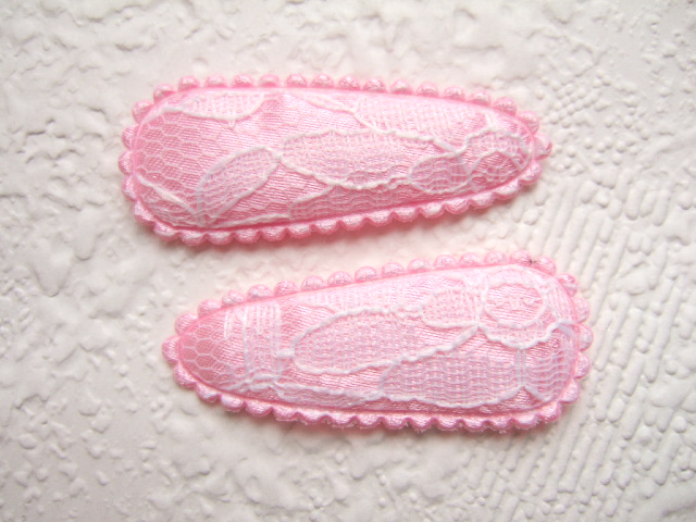 Prachtige kniphoesjes van roze satijn met fijn wit kant, voor 4 cm haarknipjes.