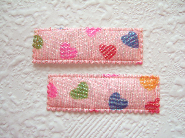 Roze hoesjes met glinster, bedrukt met hartjes.