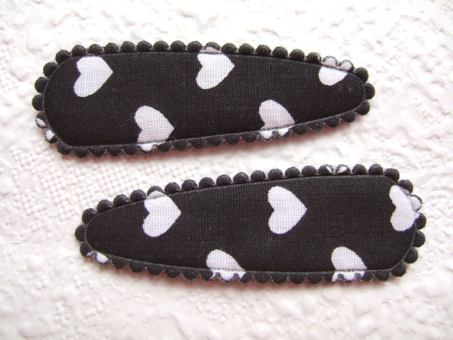 Zwarte katoenen kniphoesjes bedrukt met witte hartjes.