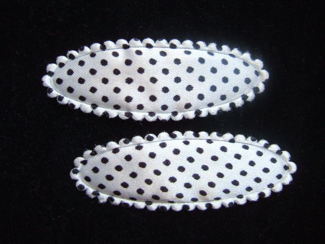 Ovale satijnen polkadots kniphoesjes met zwarte stippen.