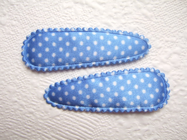 Blauwe satijnen polkadots kniphoesjes met witte stippen, voor 5 cm haarknipjes.