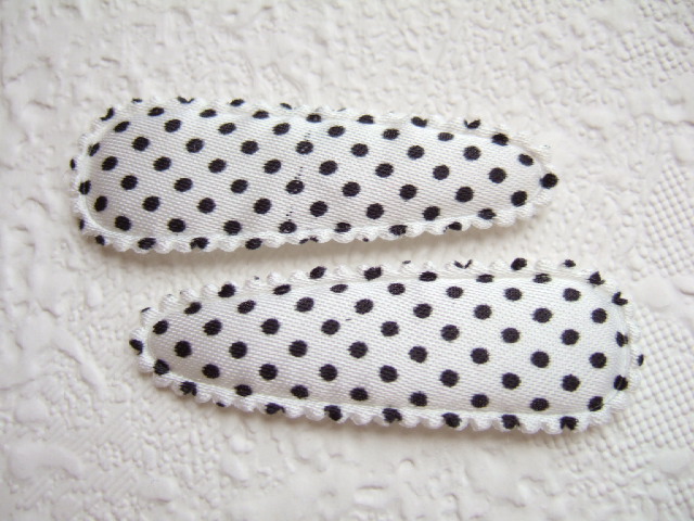Witte satijnen polkadots kniphoesjes met zwarte stippen, voor 5 cm haarknipjes.