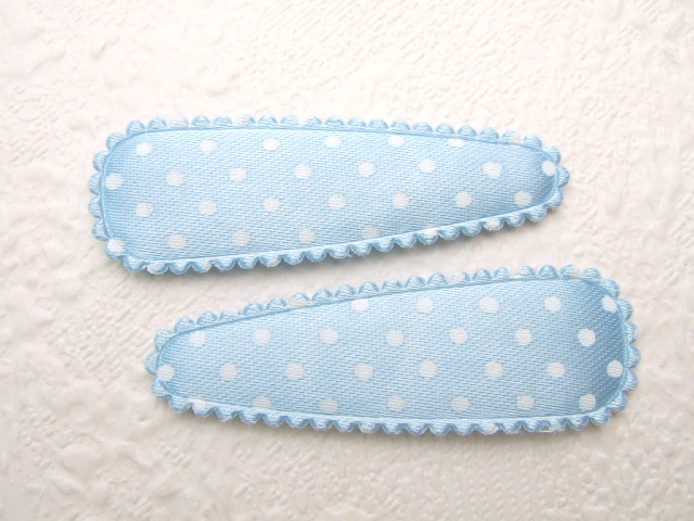 Licht blauwe satijnen polkadot kniphoesjes met witte stippen, voor 5 cm haarclips.