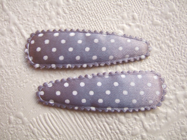 Grijze satijnen polkadot kniphoesjes met witte stippen, voor 5 cm haarclips.