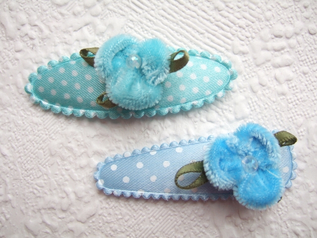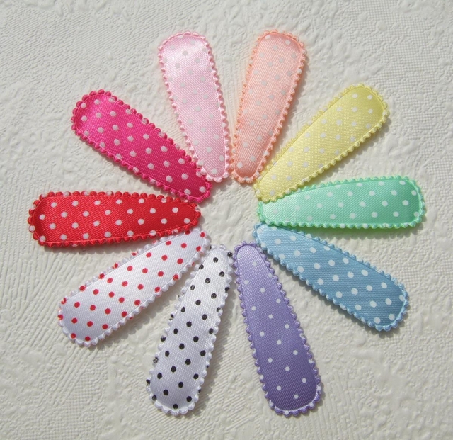 Wit satijnen polkadot kniphoesjes met rode stippen, voor 5 cm haarclips.