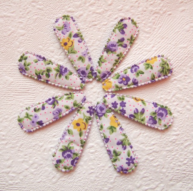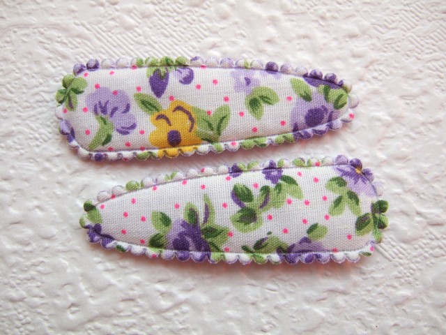 Mooie katoenen kniphoesjes, bedrukt met fijne stipjes en bloemetjes in lila paars en geel.