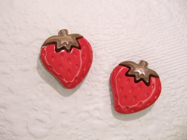 Aardbeien knoopjes met een oog aan de achterkant.