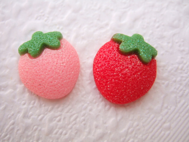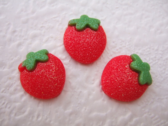 Mooie rode aardbeien flatbacks met iets glinster, met een groen kroontje.