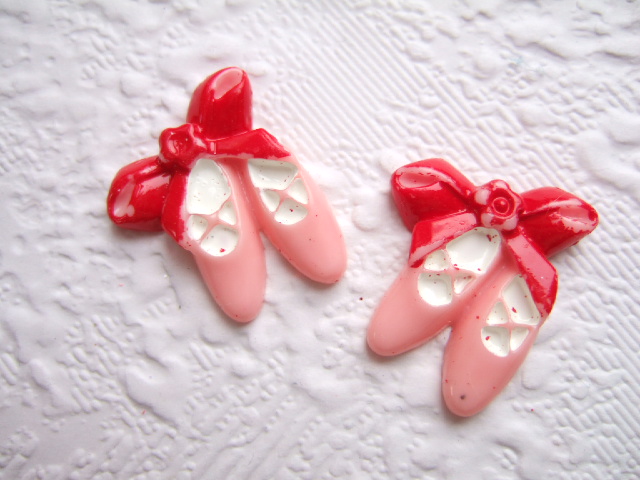 Ballerina schoentjes flatback ~ 23 mm ~ Rood / Roze