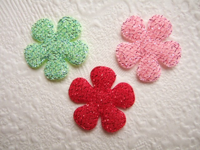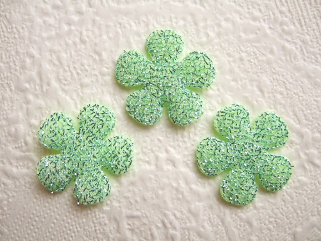 Mooie zacht mint groene bloemetjes met fijne glitter draadjes erin.
