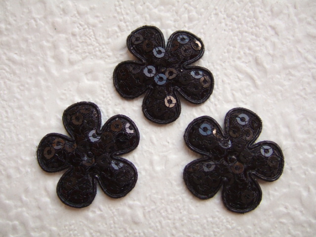 Mooie zwarte bloemen, bezet met lovertjes.