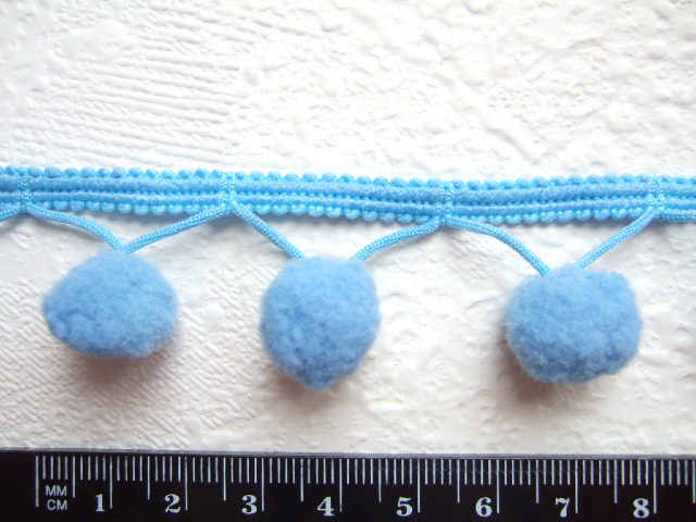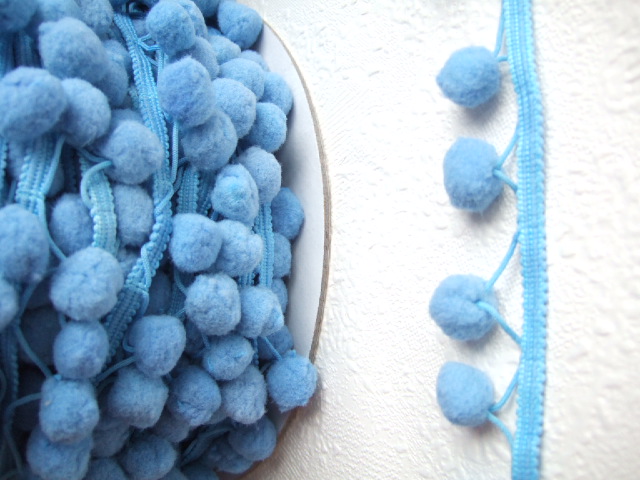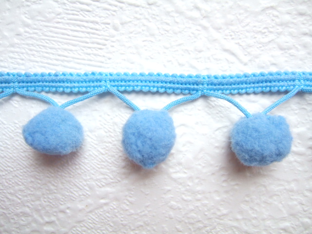 Mooi blauw bolletjesband / pompomband / pompoenband