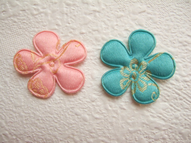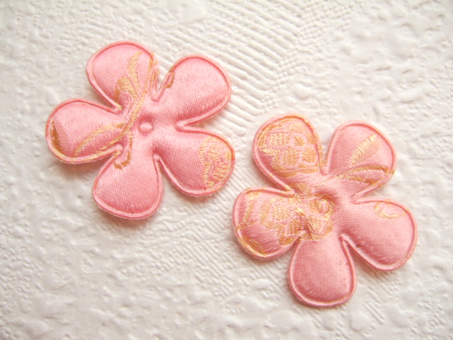 Prachtige bloemen van warm roze brokaat met gouden bloemen.