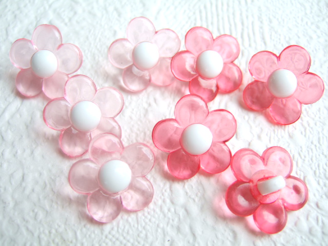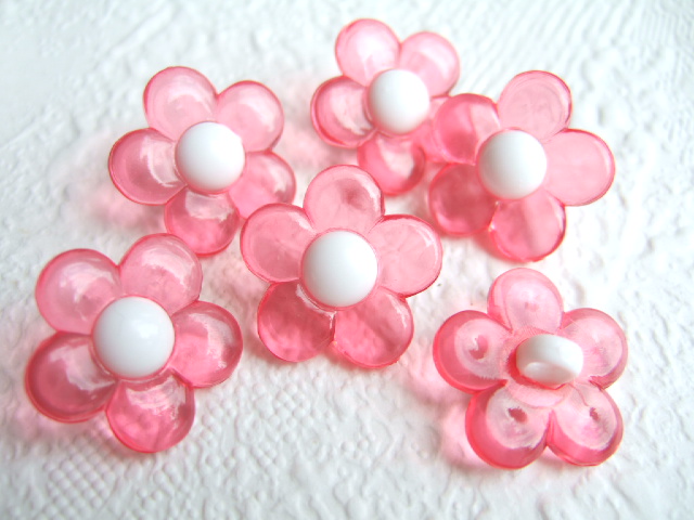 Mooie doorzichtige roze-rode bloemen knoopjes, met een wit hartje.