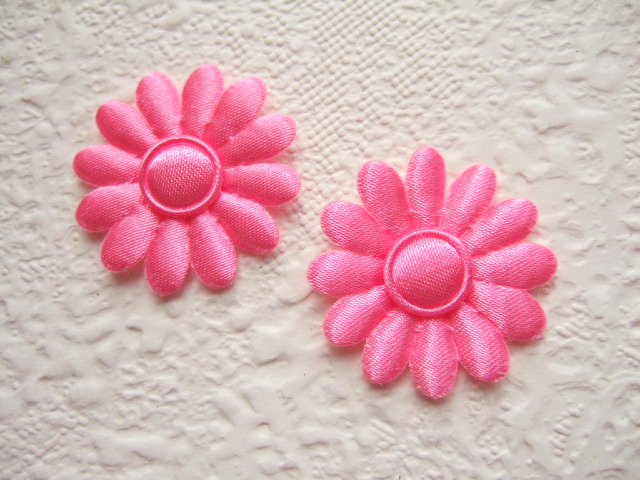 Effen satijnen margriet bloemetje, donker roze met een roze hartje.