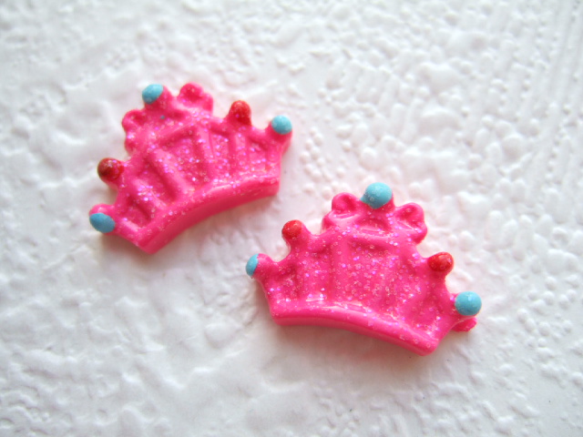 Feestelijke glitter kroontjes flatback ~ 20 mm ~ Fuchsia roze