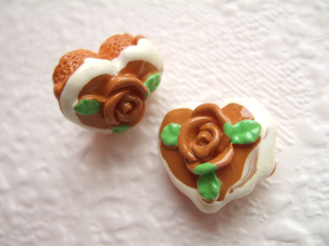 Hele mooie flatbacks van een heerlijk stukje hart taart met een roosje erop.