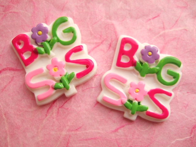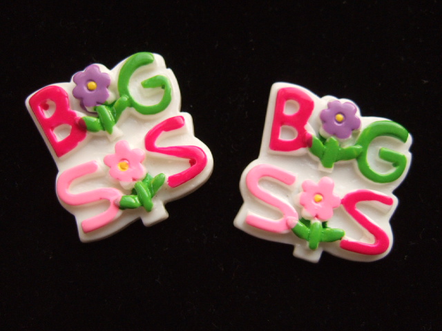Mooie flatback met de tekst “Big Sis”, versiert met bloemetjes.