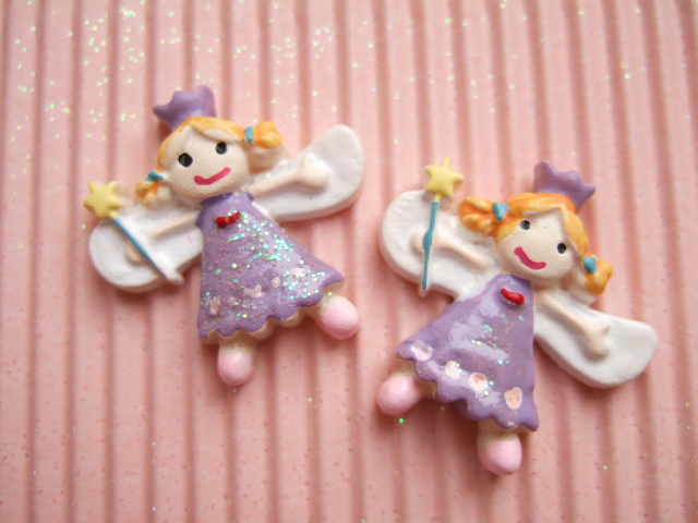 Schattige flatback van een elfje met een lila glitterjurkje.