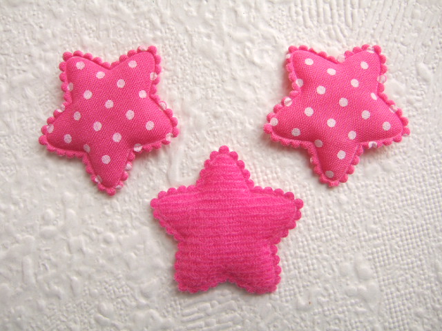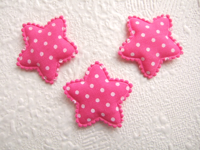 Mooie fuchsia roze katoenen sterren met witte stippen.