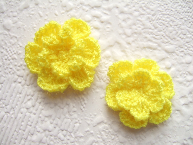 Fel citroen neon gele dubbele gehaakte bloemetjes.