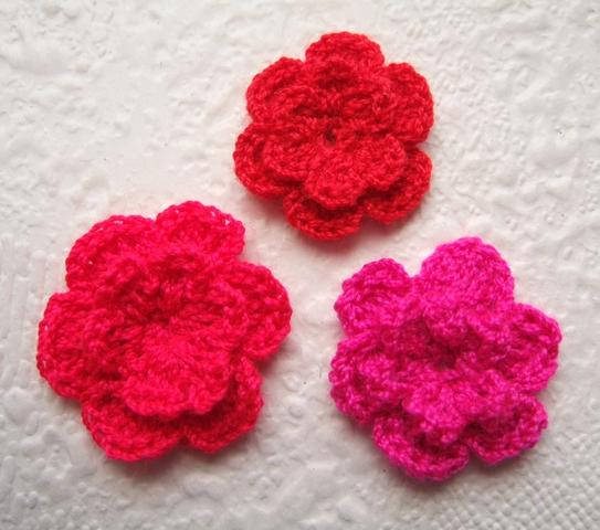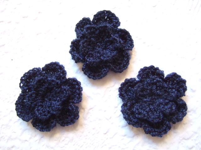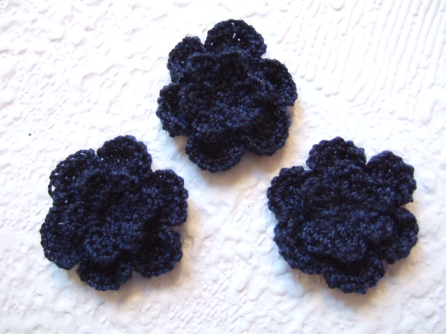 Heel donker blauwe dubbele gehaakte bloemetjes.