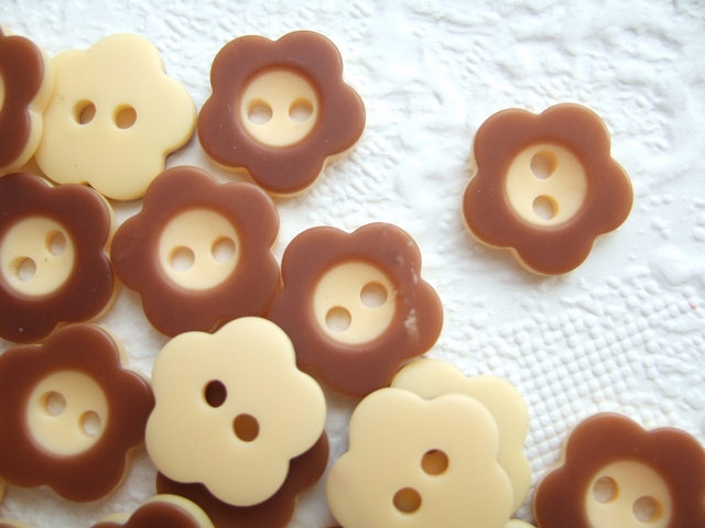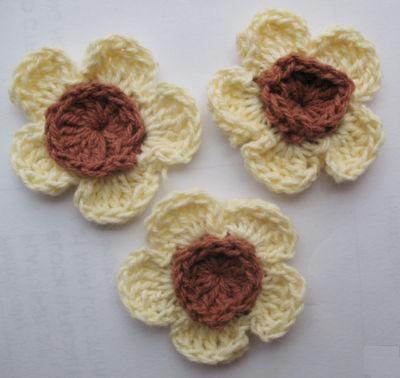 Gehaakte crème-bruine dubbele bloemen.