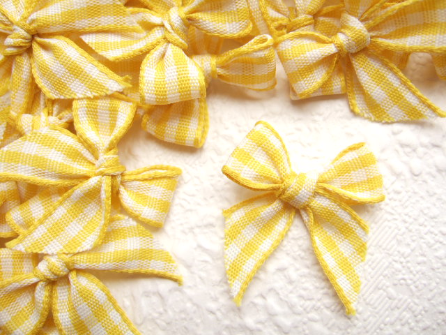 Mooie geknoopte strikjes in een geel/wit ruitje.