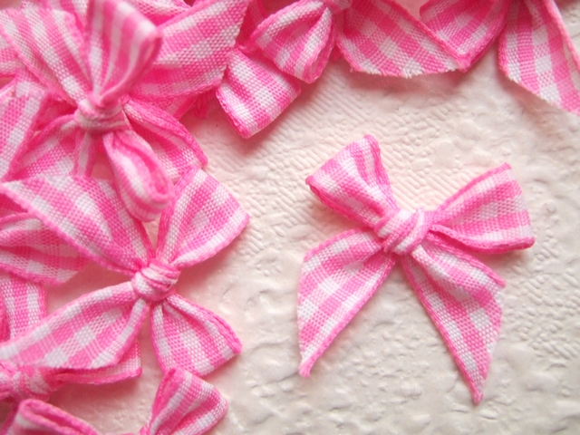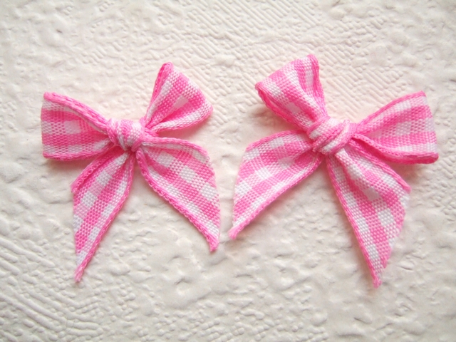 Mooie geknoopte strikjes in een roze/wit ruitje.