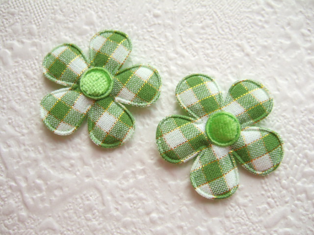 Groen / wit geruite bloemen met een goud draadje erdoor.