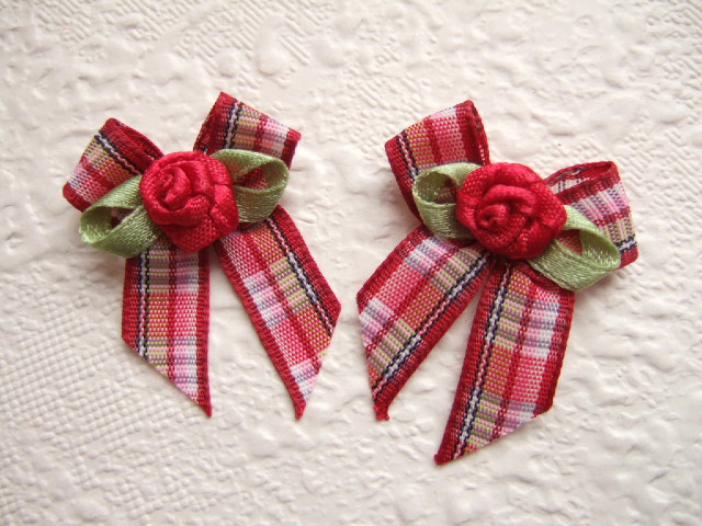 Lieve strikjes in een brocant donkerrood/roze ruitje.