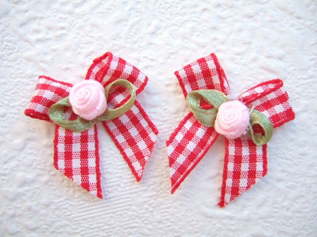 Geruit strikje met een satijnen roosje ~ 3,5 cm ~ Rood / Roze