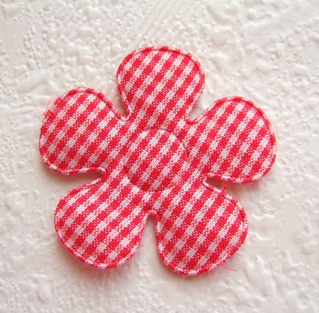 Grote licht gevulde bloemen met rode / witte ruitjes.