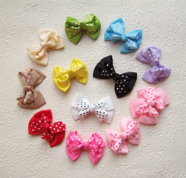 Mooie grote 3D strikken van effen crème grosgrain band en band met witte stippen.