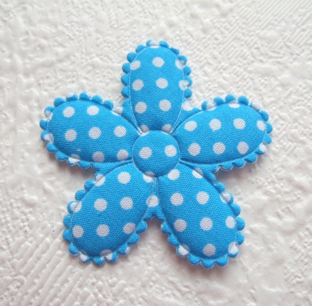 Grote katoenen gevulde bloemen, blauw met witte stippen.