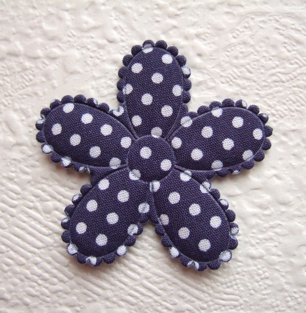 Grote katoenen gevulde bloemen, donker blauw met witte stippen.