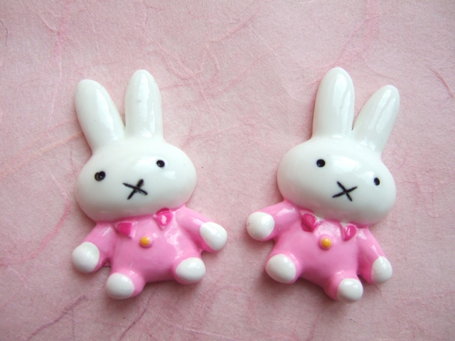 Lief room wit konijntje met roze jurkje, flatbacks.