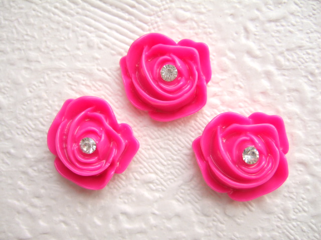 Mooie glanzende fuchsia roze bloemetjes flatback met een bling steentje.