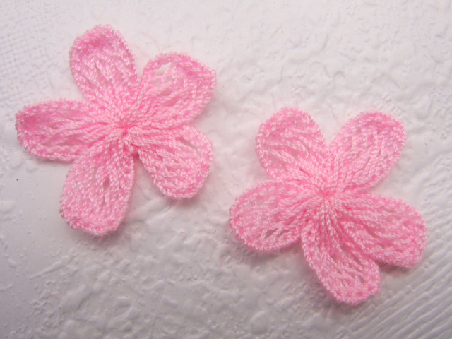 Grote wat losser gehaakte roze bloemen.